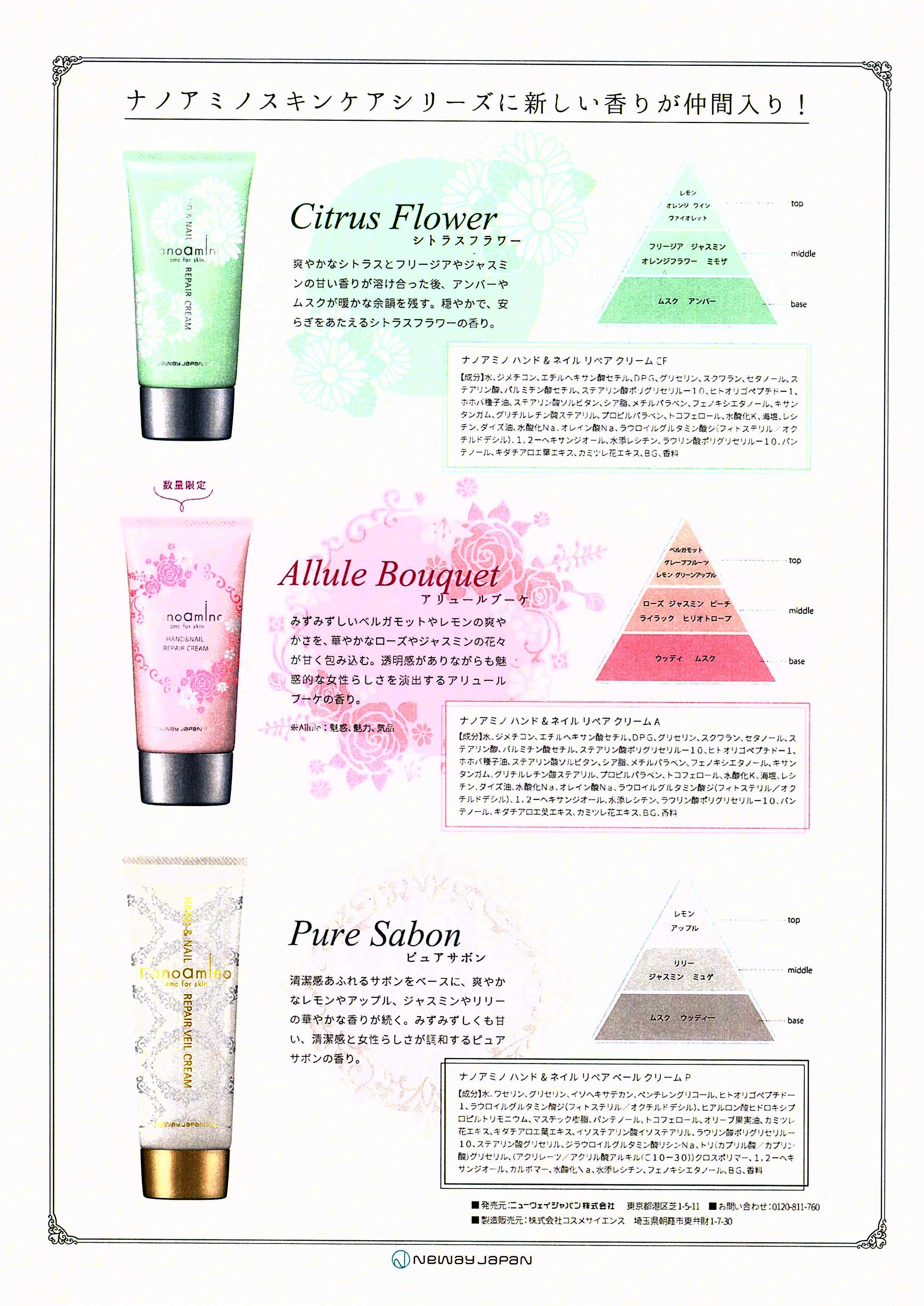 2016/09/21 Wed 大ヒット御礼 スタート 前橋の美容室イズムフィエット 毎年大ヒット商品、ナノアミノ¥2052(グロス付き¥1728)キャンペーンスタートです!! アリュールブーケ(無香料リペアクリーム付)は数量限定発売 10/21発売予定商品 ISM Filletteでは10/23 入荷予定となっております しかも今年は新しい香の仲間入り ピュアサボン シトラスフラワー すごくいい匂いでわくわくしますよ 楽しみですね フィエットでは全香りのテスターをご用意していますのでいろいろつけて悩んでくださいね! もちろん成分は他社にも勝るEGF(ノーベル賞)だから効果抜群 今年の秋、冬はすべすべ、うるおい、いい香りで周りを魅了してくださーい キャンペーンは12月下旬まで行う予定ですのでクリスマスプレゼントにおすすめ EGF, ナノアミノ, ISM 前の記事へ 次の記事へ